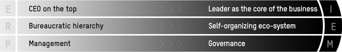 Delegation (to CMO, COO), splitting and/or delegating the IEM-leader’s core functions as well as collective leadership is strongly prohibited within the IEM Paradigm.